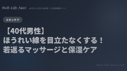 40代男性が一気に老けて見える原因「ほうれい線(口元のシワ)」を目立たなくする具体的なアプローチ。即効性のある顔筋トレから、コラーゲンを守る紫外線対策、適切なスキンケア保湿術まで解説。
